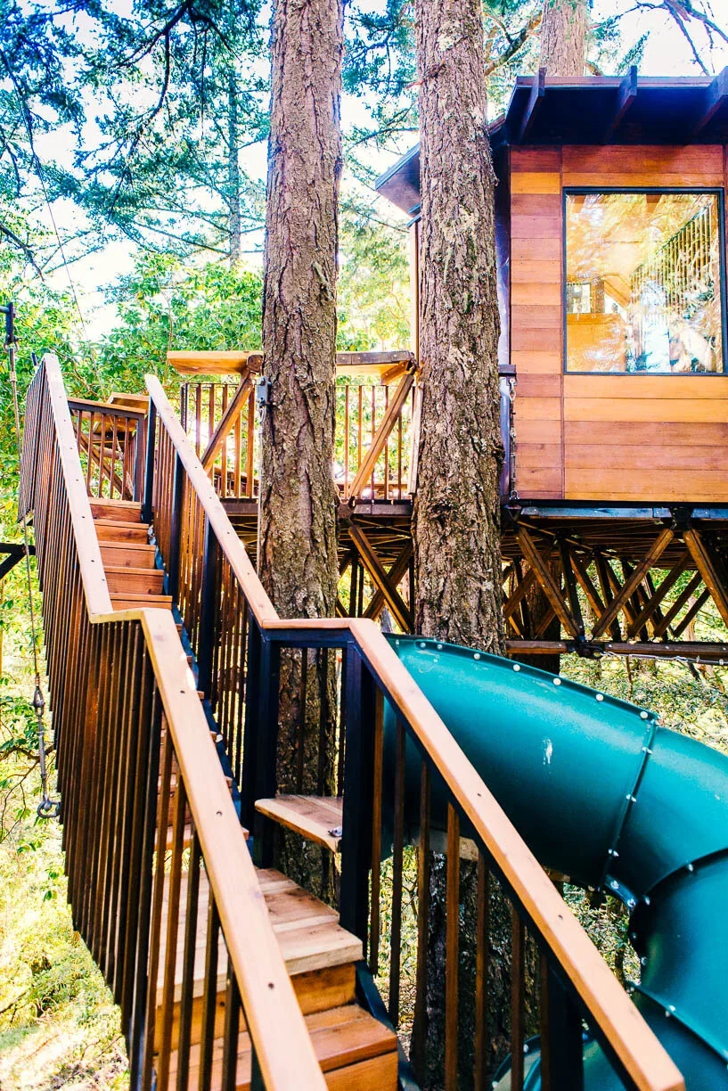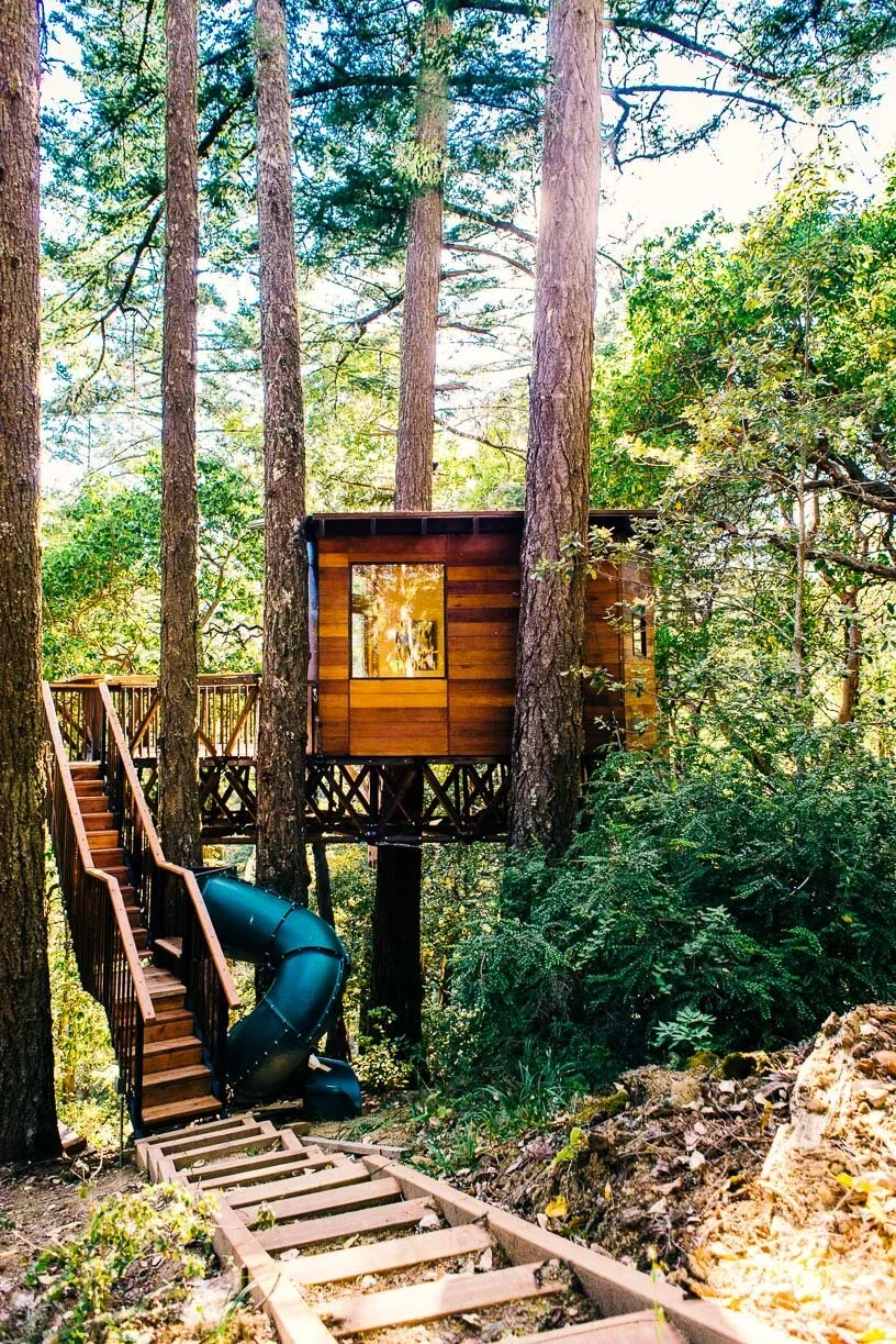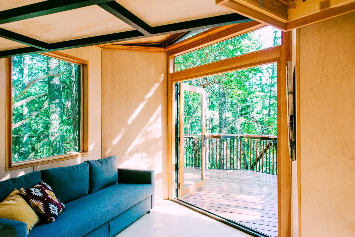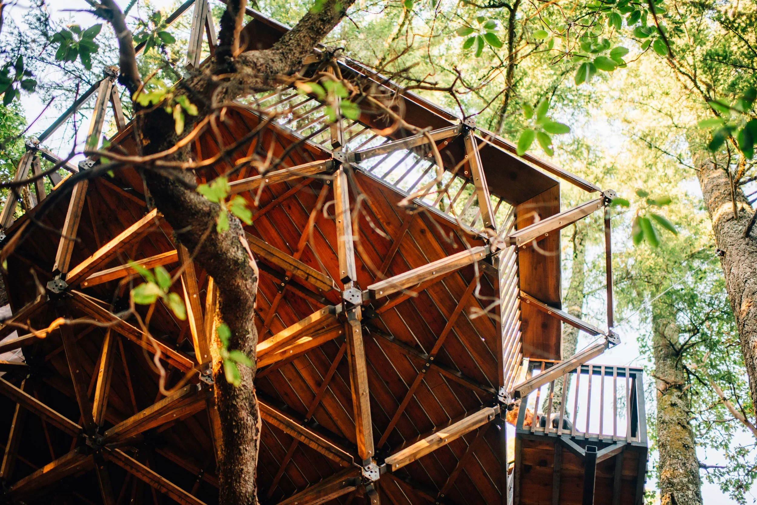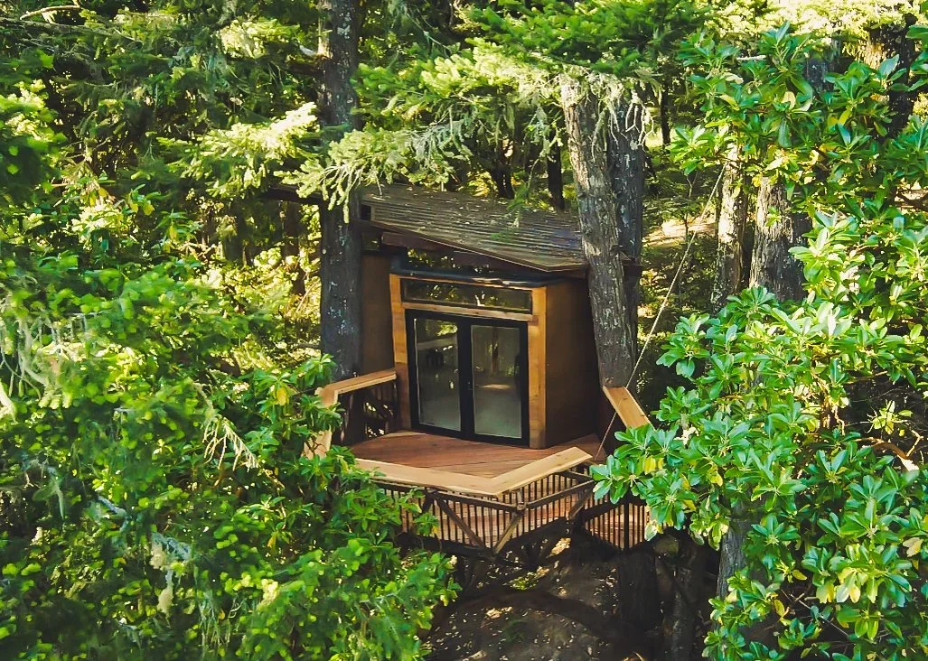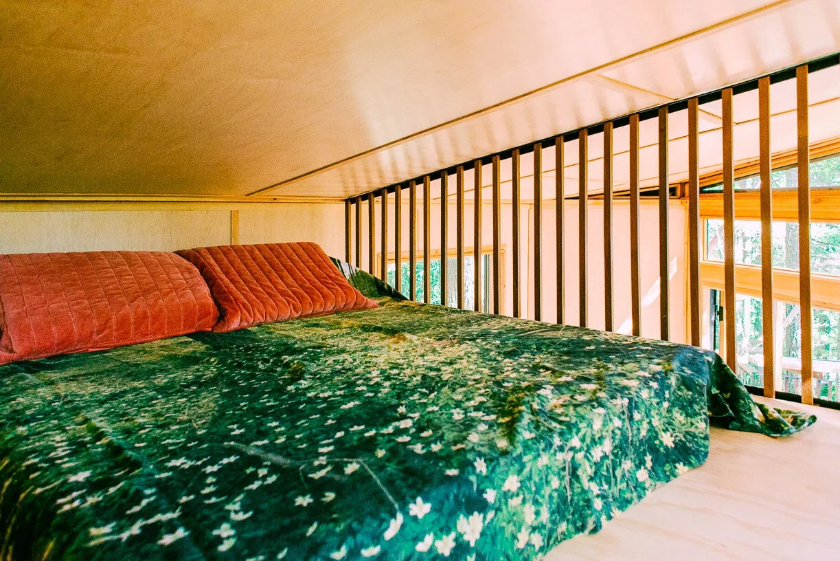 The Madrone Grove represents the evolution of our Equilibrium Home series, featuring the largest floor area yet while maintaining an intimate connection with its forest setting. The Tetratruss foundation was precisely engineered to weave between the surrounding grove, wrapping around trees rather than displacing them. Prefabricated SIP walls rise tall, clad in local redwood and copper, while expansive glass entryways flood maple plywood interiors with natural light. Family life unfolds across multiple zones—an elevated loft for quiet retreats, a grand exterior deck for gatherings, and a playful winding slide that adds joy to daily movement. This warm, illuminated sanctuary demonstrates how modular construction can create spacious yet site-sensitive homes that bring the best of outdoor living inside.