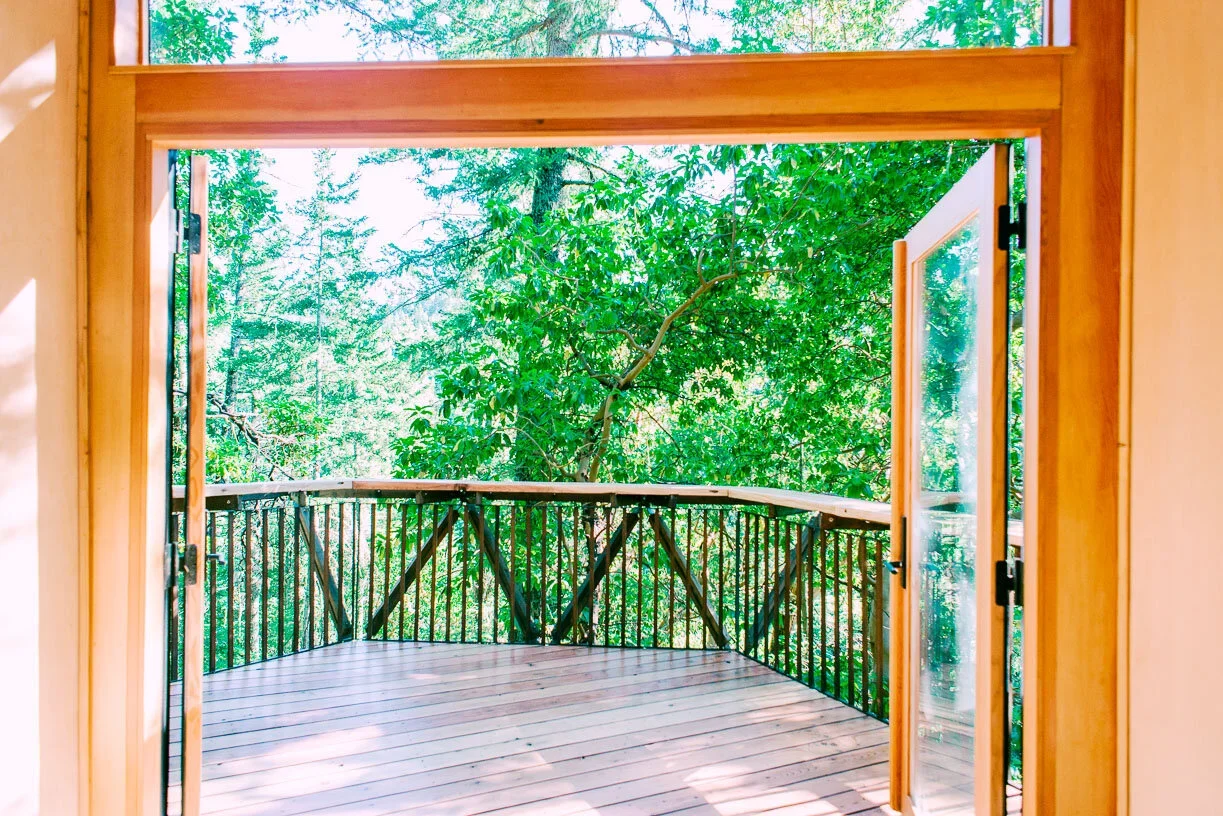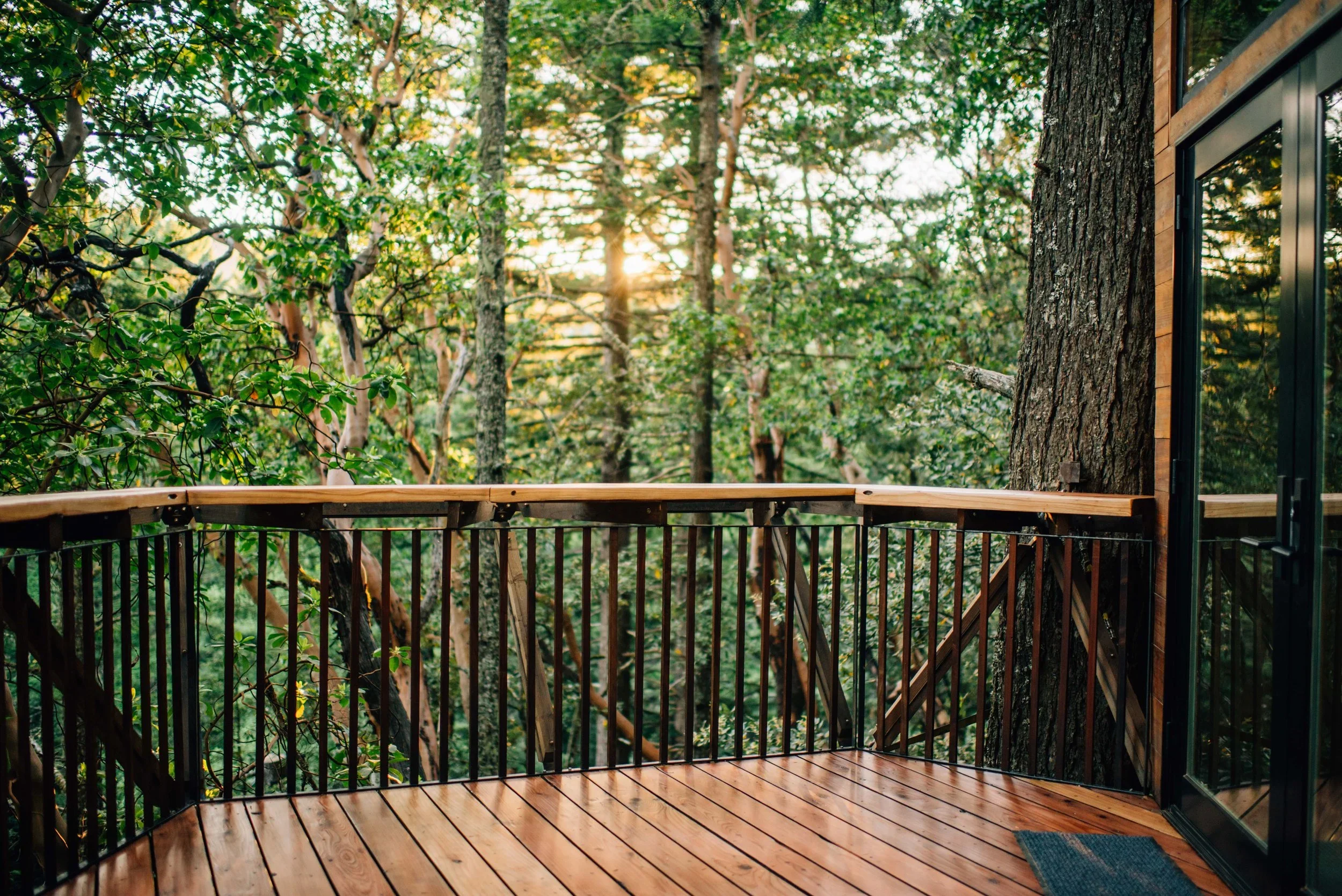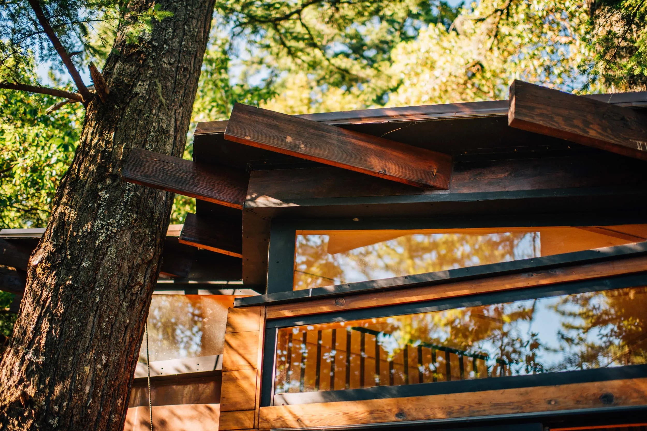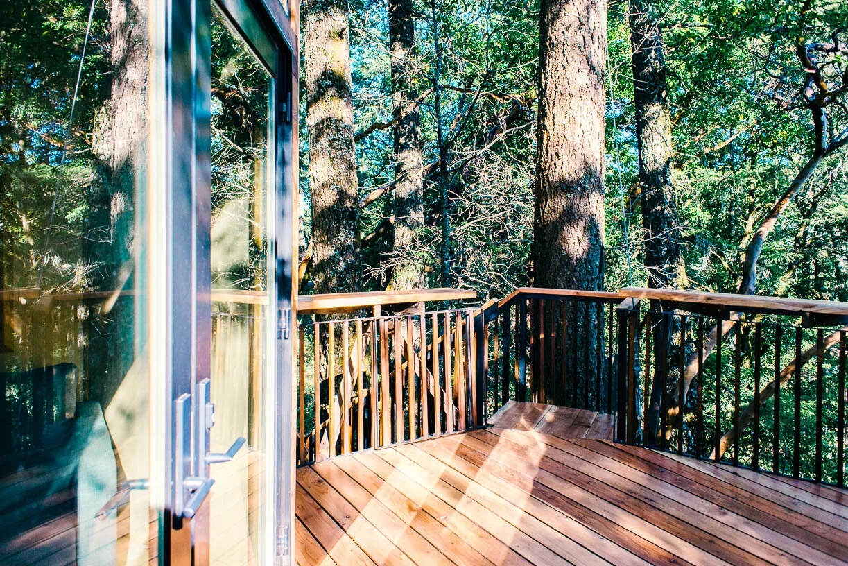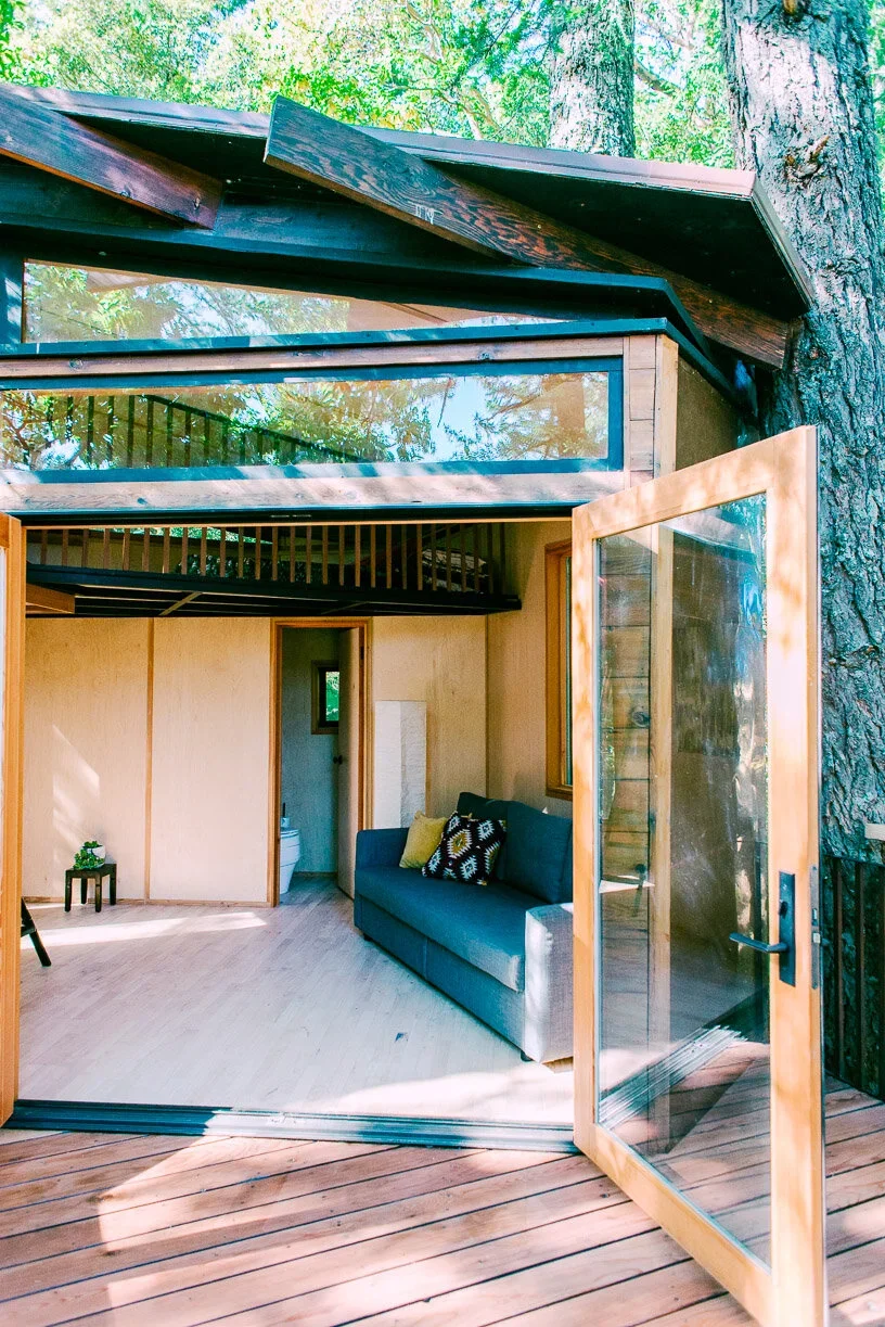 Wrapped between madrones on our innovative Tetratruss foundation, this expansive Equilibrium Home glows with maple warmth and redwood elegance.